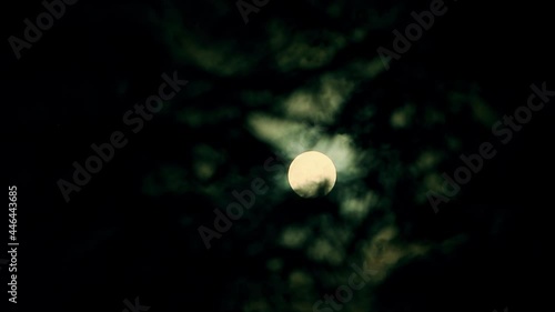 The watermark will not be included on Wall mural.: The full moon peeps through the branches of palm trees and exotic trees on the seashore - background