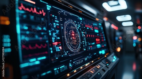 The watermark will not be included on Wall mural.: The futuristic spaceship computer monitor shows complex information display