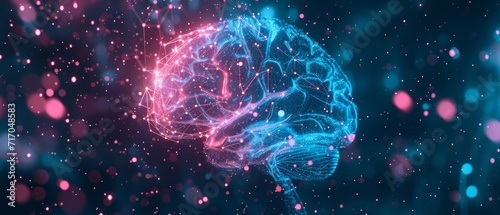 The watermark will not be included on Wall mural.: The human brain with electricity-based technology on dark background generative ai