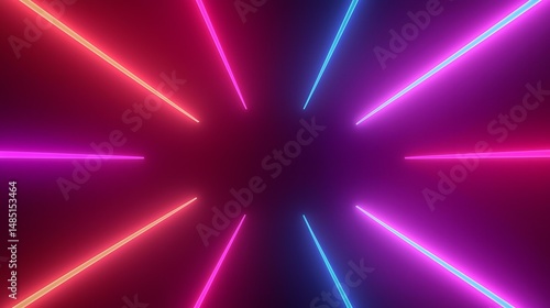 Wall mural the image contains brightly colored neon lines radiating from a central point, creating a starburst  - Wall murals Wall mural the image contains brightly colored neon lines radiating from a central point, creating a starburst - Wall murals