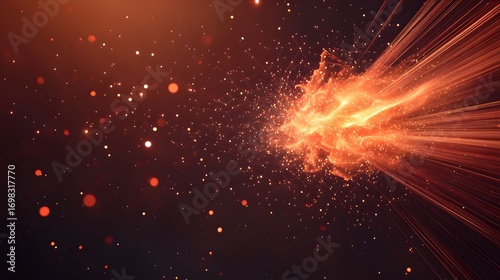 Wall mural : The image features an abstract design with a central burst of warm, orange light emanating outward,