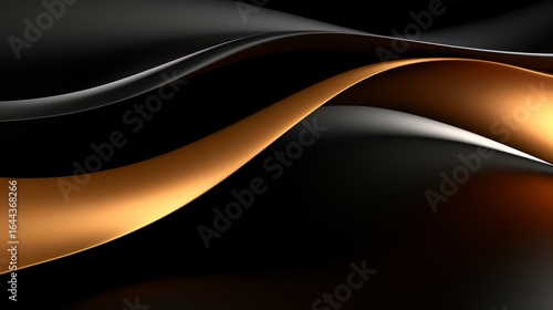Wall mural : The image is a black and gold wave pattern - the waves are flowing and curving, creating a sense of m