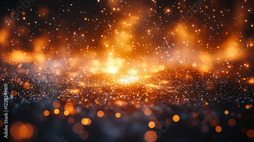 The watermark will not be included on Wall mural.: The image is a blurry, orange and blue background with a lot of small, bright dots - the dots are sca