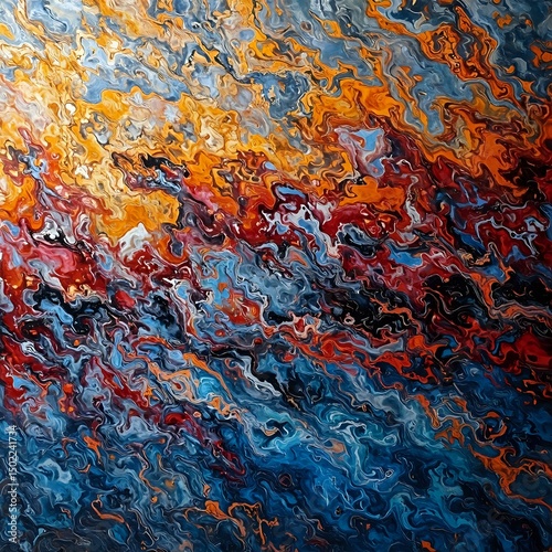 Wall mural : The image is an abstract painting showcasing a swirling pattern of colors resembling a dynamic, fier