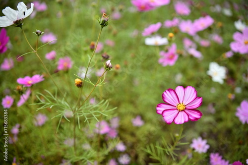 Wall mural the image showcases a field of these vivid flowers in an autumn garden with selective focus, highlig