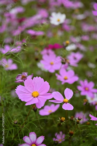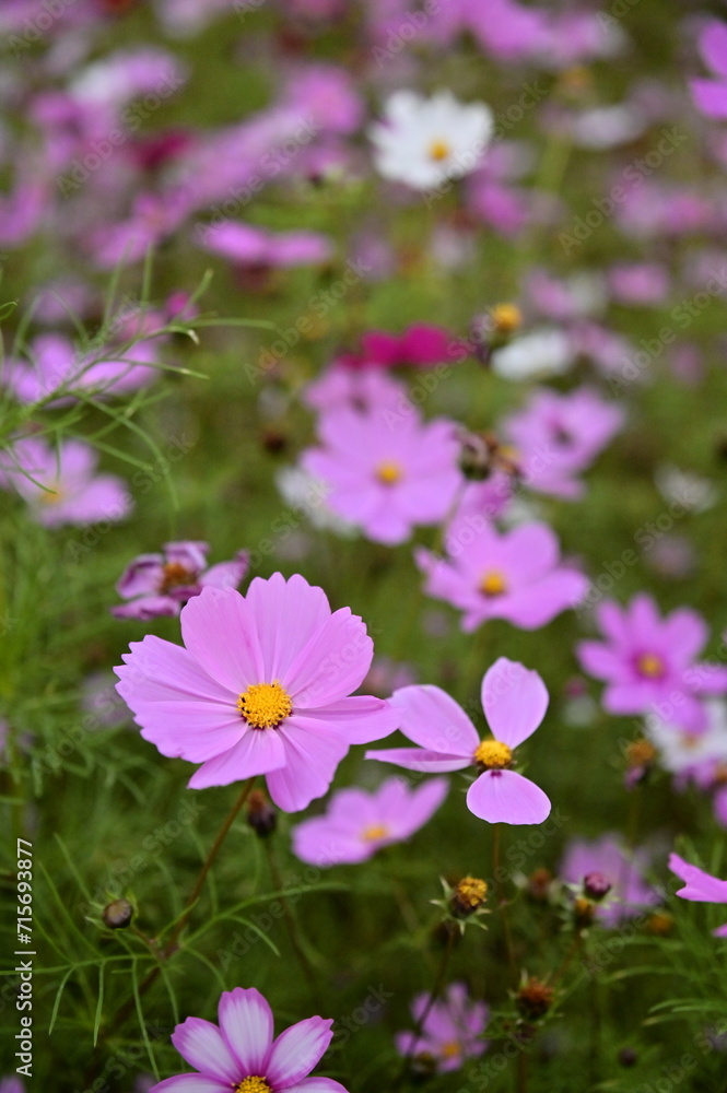 Wall mural the image showcases a field of these vivid flowers in an autumn garden with selective focus, highlig