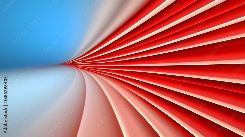 The watermark will not be included on Wall mural.: The image shows an abstract design of red and white stripes curving from the bottom right towards th