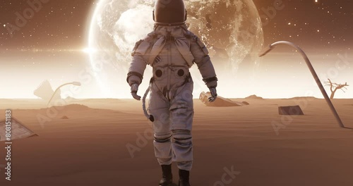 The watermark will not be included on Wall mural.: The last human survivor after nuclear apocalypse walks amongst the ruins - great destruction related