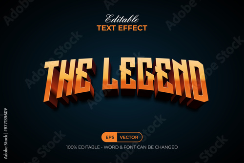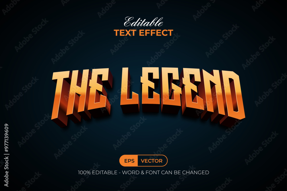 Wall mural the legend text effect 3d curved golden style. editable text effect.