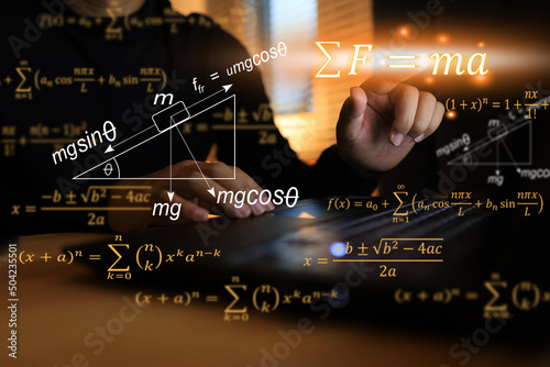 Wall mural the man in black is clicking, press touch to activate. newton's second law of motion f equal to ma c