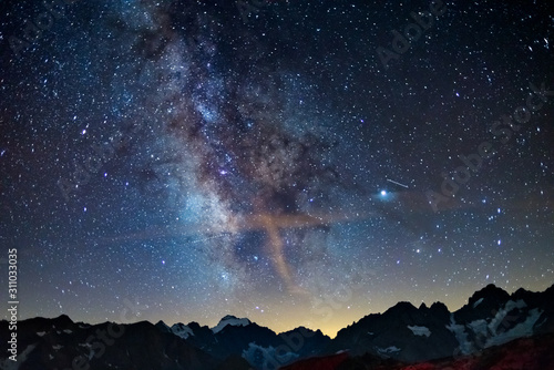 Wall mural : The milky way arch starry sky on the alps, massif des ecrins, briancon serre chevalier ski resort, f