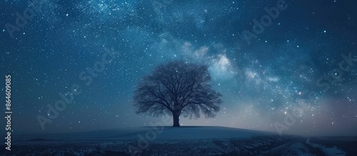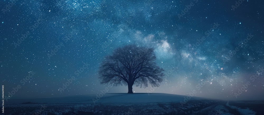 The watermark will not be included on Wall mural.: The milky way forming an arc over a tree in a clear winter night, creating an enchanting scene in th