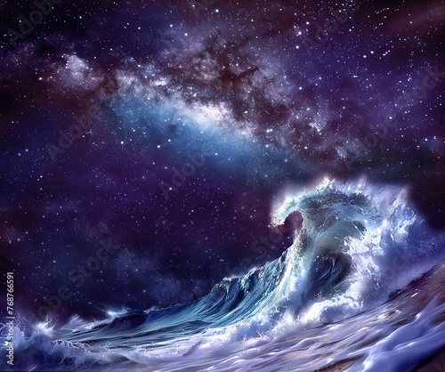 The watermark will not be included on Wall mural.: The milky way galaxy meets with a giant ocean wave - dark sky night background and huge wave in the
