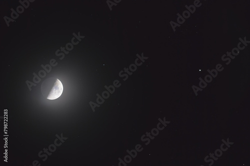 Wall mural the mineral moon in its first quarter phase, in conjunction with the star pollux in the gemini const - Wall murals Wall mural the mineral moon in its first quarter phase, in conjunction with the star pollux in the gemini const - Wall murals