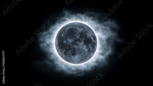The watermark will not be included on Wall mural.: The moon surrounded by a glowing halo with faint clouds passing in front of it