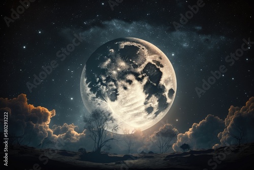 The watermark will not be included on Wall mural.: The night sky with a realistic moon - generative ai