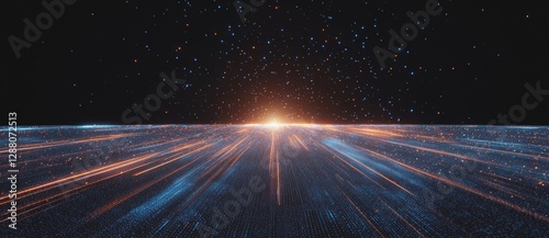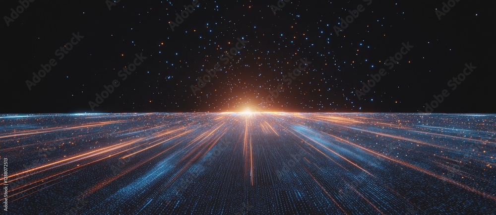 Wall mural the notion of data flowing digitally on a thoroughfare with motion blur to illustrate fast-paced tra