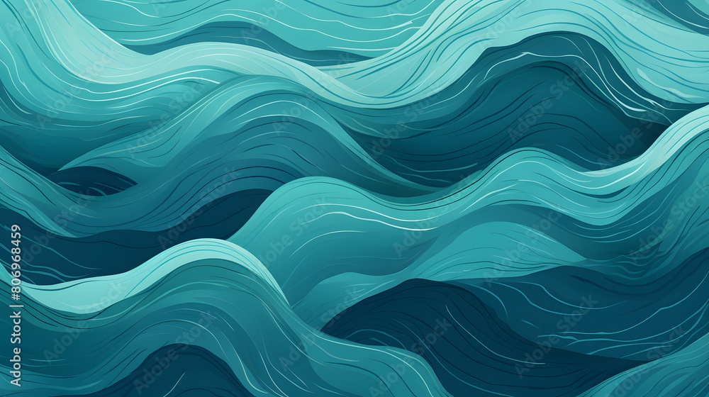 Wall mural the ocean represented in a canvas full of teal color waves abstract geometric pattern graphics poste - Wall murals Wall mural the ocean represented in a canvas full of teal color waves abstract geometric pattern graphics poste - Wall murals