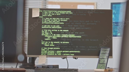 The watermark will not be included on Wall mural.: The office of an i - t - company with code on the computers