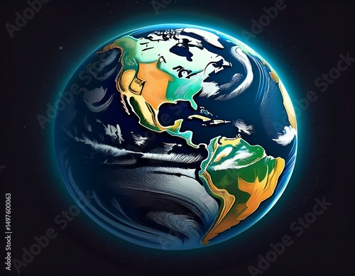 Wall mural the planet earth as seen from space the scene is isolated on a black background