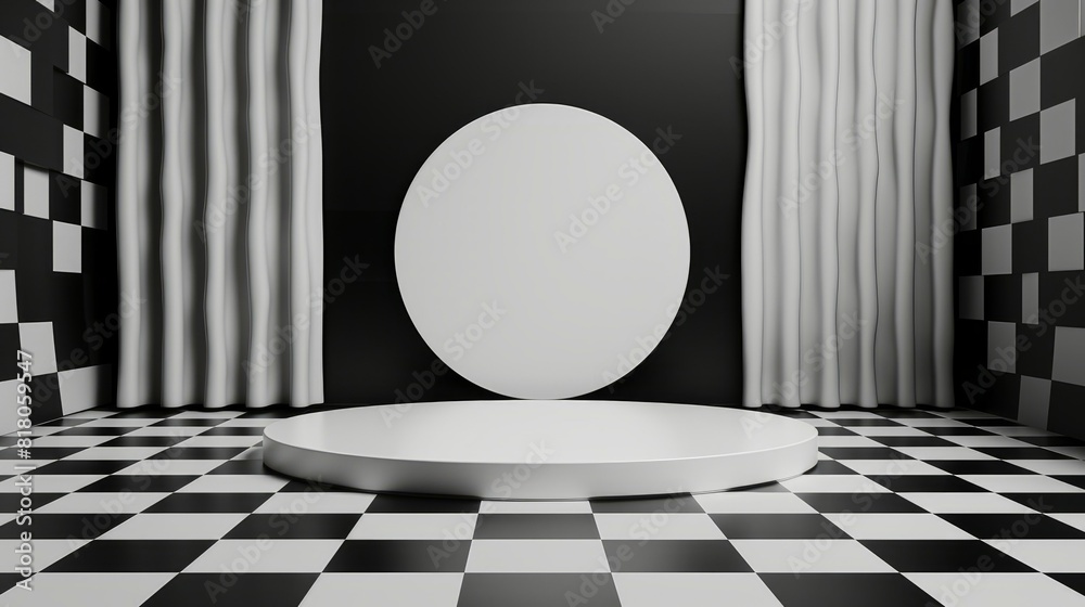 The watermark will not be included on Wall mural.: The podium for the product is white and black, an empty showcase for displaying goods - 3d rendering -