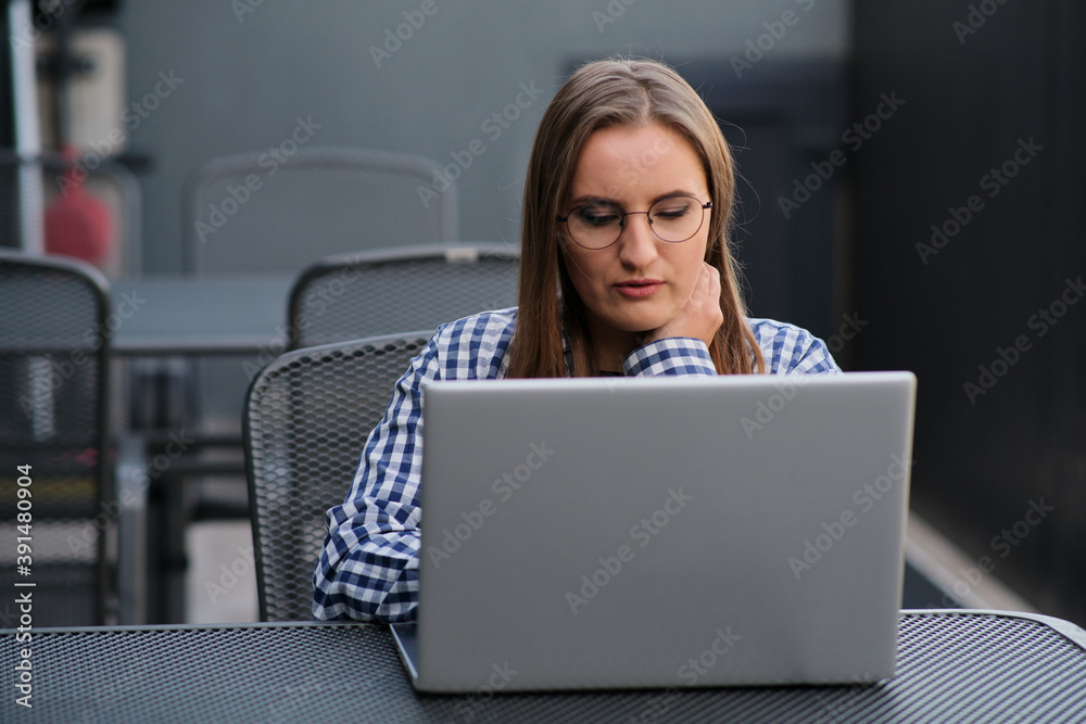 Wall mural the programmer girl works at the computer girls in science. in an empty office during a pandemic. - Wall murals Wall mural the programmer girl works at the computer girls in science. in an empty office during a pandemic. - Wall murals