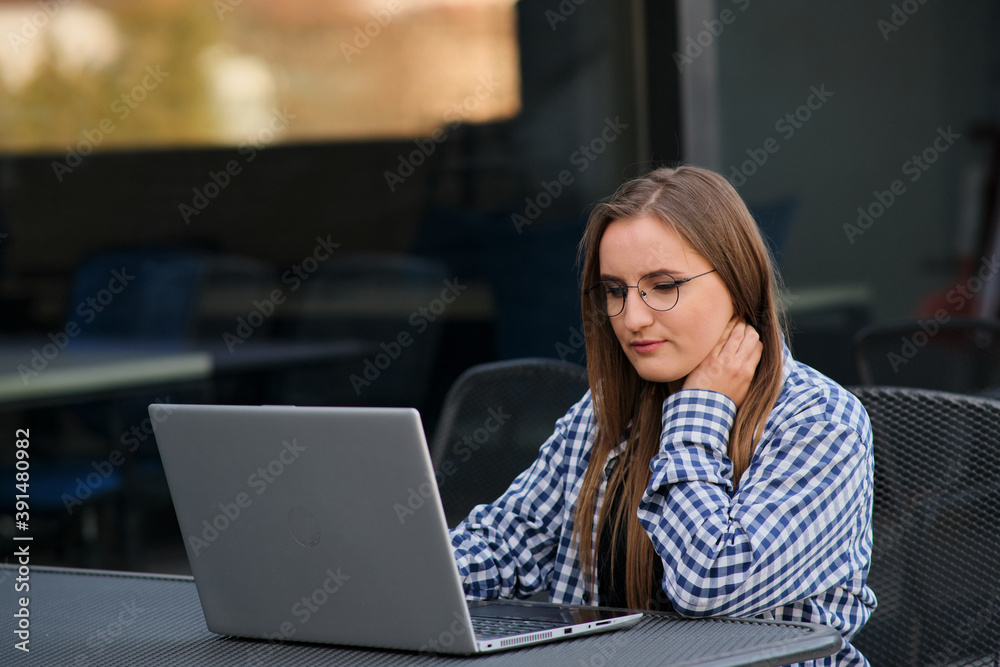 Wall mural the programmer girl works at the computer girls in science. in an empty office during a pandemic. - Wall murals Wall mural the programmer girl works at the computer girls in science. in an empty office during a pandemic. - Wall murals