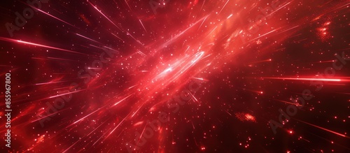 Wall mural : The red galaxy abstract image with a lot of glowing red particles looks like an explosion -