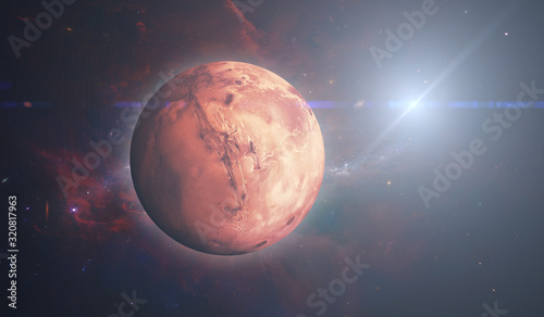 Wall mural the red planet mars in the outer space, sci-fi galaxy universe with many stars. elements of this ima - Wall murals Wall mural the red planet mars in the outer space, sci-fi galaxy universe with many stars. elements of this ima - Wall murals