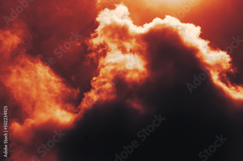 Wall mural the red sky background looked like smoke and fire. bomb violent.