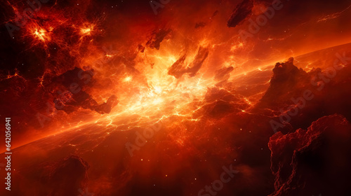 Wall mural the red sun's atmosphere, sun with plasma and explosions background in space. supernova in space.
