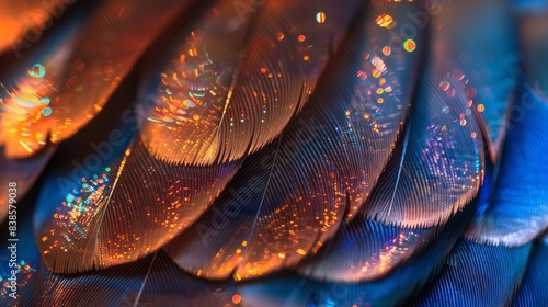Wall mural the rich iridescent plumage of these feathers glimmers in the light displaying an array of mesmerizi