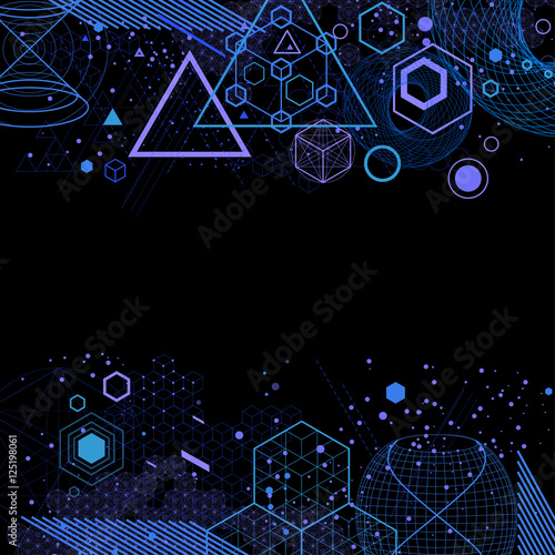 The watermark will not be included on Wall mural.: The science and mathematics abstract background with circles, cube, triangles and a lot of lines - sa