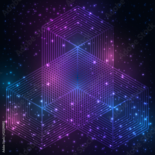 Wall mural the science and mathematics abstract background with circles, cube, triangles and a lot of lines. sa