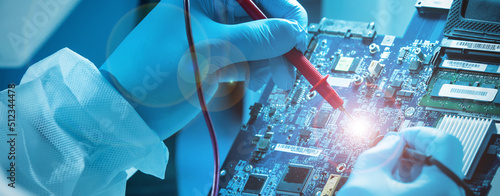 The watermark will not be included on Wall mural.: The scientist works in a modern scientific laboratory for the research and development of microelect