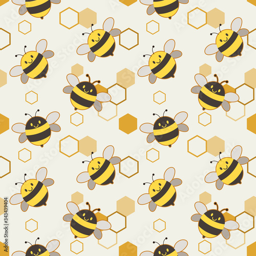 The seamless of cute bee and shape of hexagon on the white background - the pattern of cute bee and pWall mural