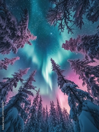 Wall mural the sky above the surreal forest is an impossible shade of pink casting an otherworldly glow over th