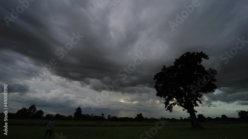 The watermark will not be included on Wall mural.: The sky and rain clouds move quickly over the fields in the evening -