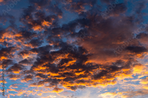 The sky at dusk the rays of the sun hit the clouds, creating beautiful and frightening colors at theWall mural