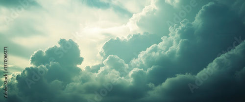 Wall mural : The sky is filled with clouds and the sun is shining through them
