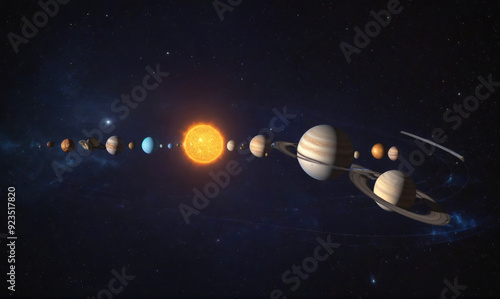 Wall mural the solar system showing planets orbiting the sun in a cosmic context