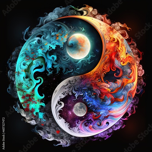 Wall mural the soul and the cosmic yin yang are celebrating the universe and the moon. concept. beautiful spiri