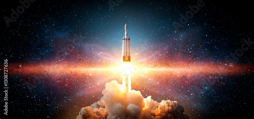 Wall mural the spaceship takes off into the starry sky. a rocket is launched into space. elements of this image