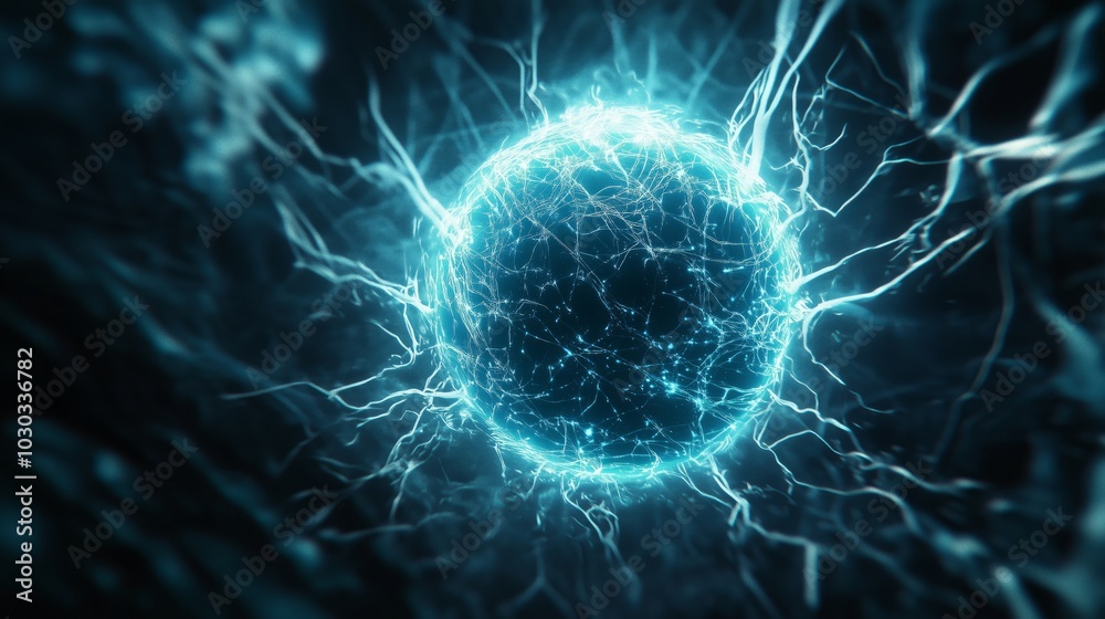 The watermark will not be included on Wall mural.: The sphere is appearing as if it is radiating energy, with delicate lines and nodes forming a comple