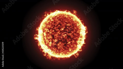 Wall mural : The sun burning brightly on a black background - seamlessly loopable computer generated animation -