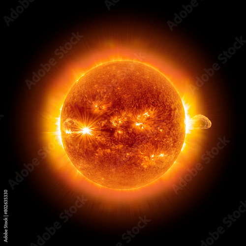 The watermark will not be included on Wall mural.: The sun from space on a black background, realistic, ultra detailed illustration of the sun with sol