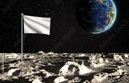 Wall mural the surface of the moon with a blank state flag and the planet earth on a background of the starry s - Wall murals Wall mural the surface of the moon with a blank state flag and the planet earth on a background of the starry s - Wall murals