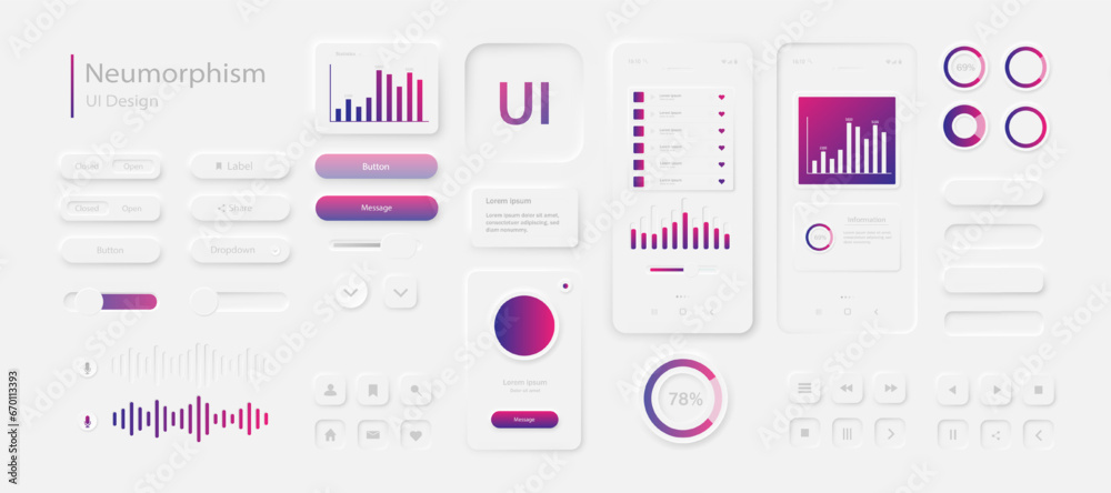 Wall mural the user interface elements for the mobile app are white and purple. a set for developing a modern w - Wall murals Wall mural the user interface elements for the mobile app are white and purple. a set for developing a modern w - Wall murals