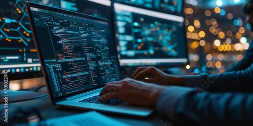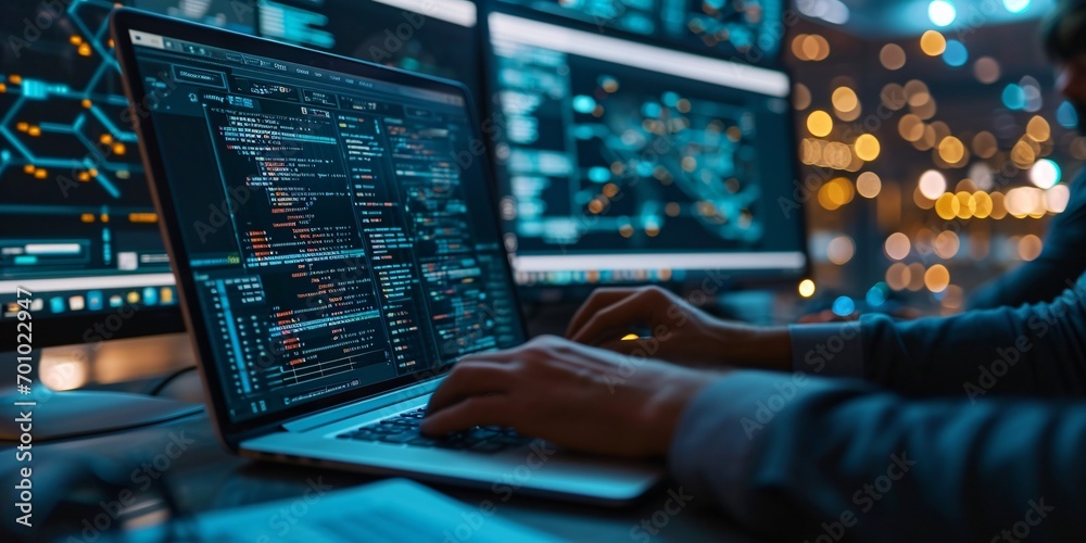 Wall mural the utilization of technology and coding skills by an engineer for data management and control with  - Wall murals Wall mural the utilization of technology and coding skills by an engineer for data management and control with - Wall murals