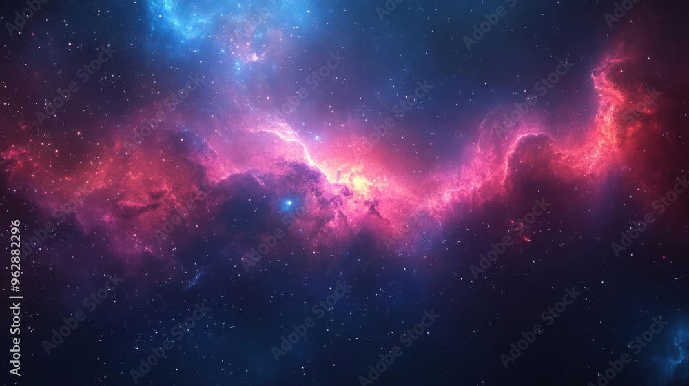 The watermark will not be included on Wall mural.: The vast expanse of the cosmos, filled with stars and nebulae in various hues of pink and blue -